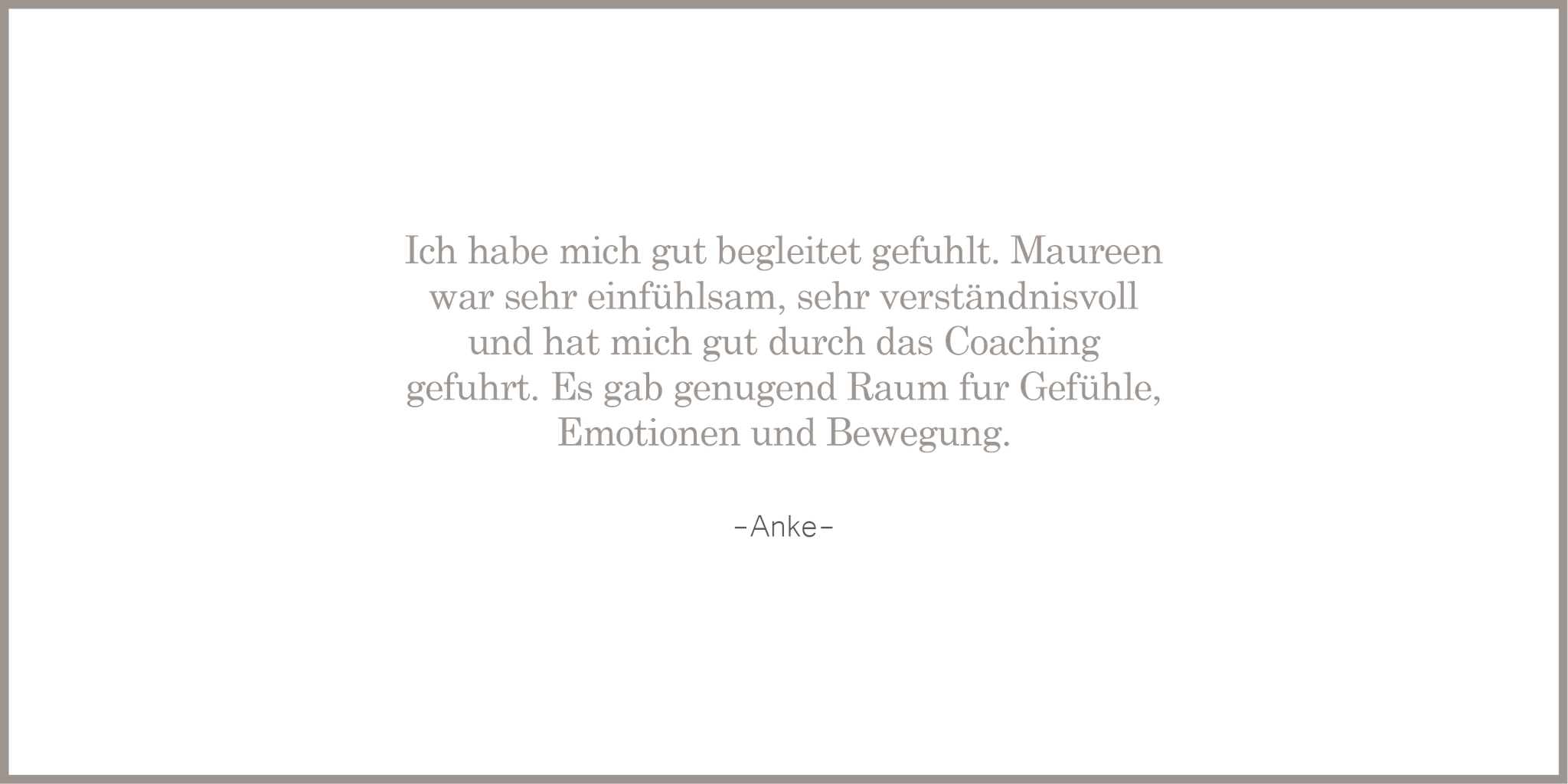 Ein herzliches Hallo und schön, dass du da bist. Ich heiße Maureen und arbeite als Life Coach. Ich unterstütze dich dabei, wenn du dir ein glückliches und erfülltes Leben erschaffen möchtest,